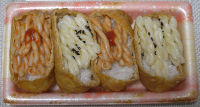 おいなりさんに、うっすい味付けのパスタぶっこんで何が始まるかおしえてくでい!